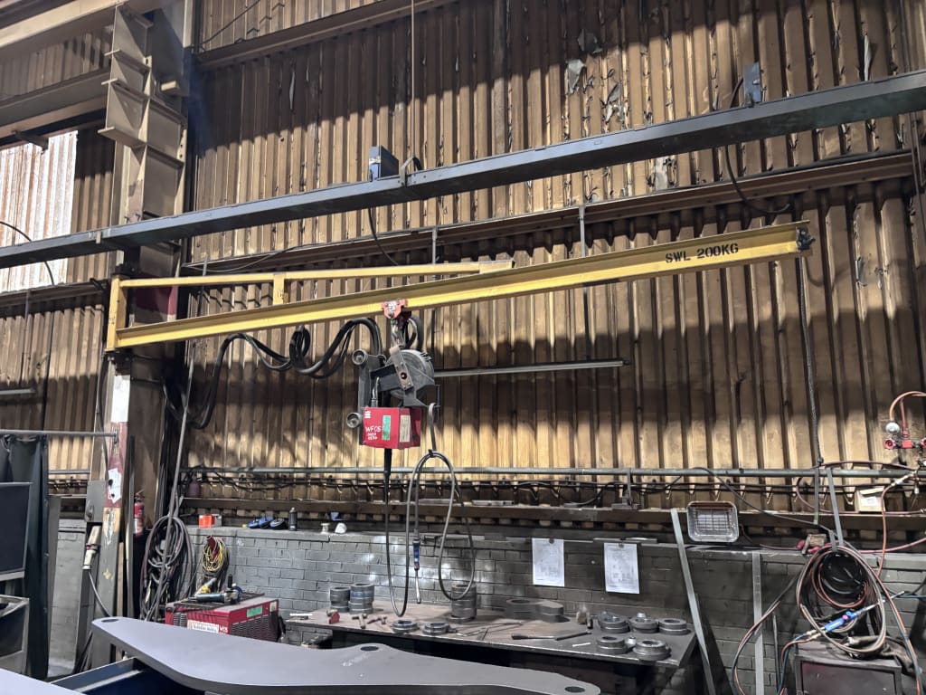 - ViewMASTOCK 500kg jib crane with YALE 500kg hoistHeight under hook 2750mm - Approx. reach 4000mm - TELEMECANIQUE remote control with 3 buttons - Made in France - Approx. weight 800kg