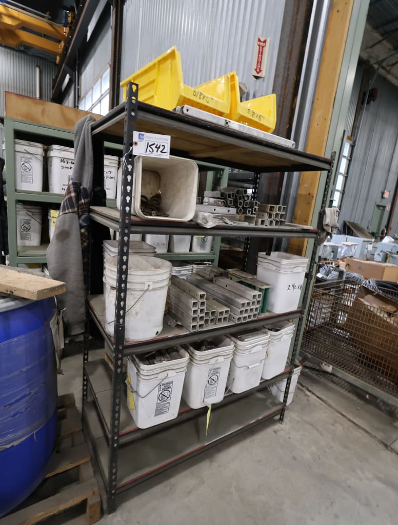 - View[9] Sections of Steel & Adjustable Steel Shelving[9] Sections of Steel & Adjustable Steel Shelving, w/ Assorted Sockets, Angles, Adapters, Aluminum, Splice Plates, Steel Bracing, Steel Angle, Grade 8 Nuts, Bolts, Assorted Hardware, etc.
